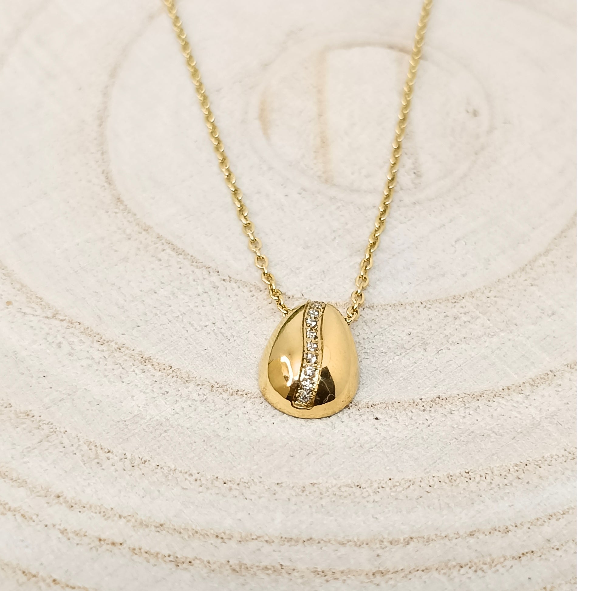 Golden Cowrie Shell Pendant Necklace with Stone Detailing