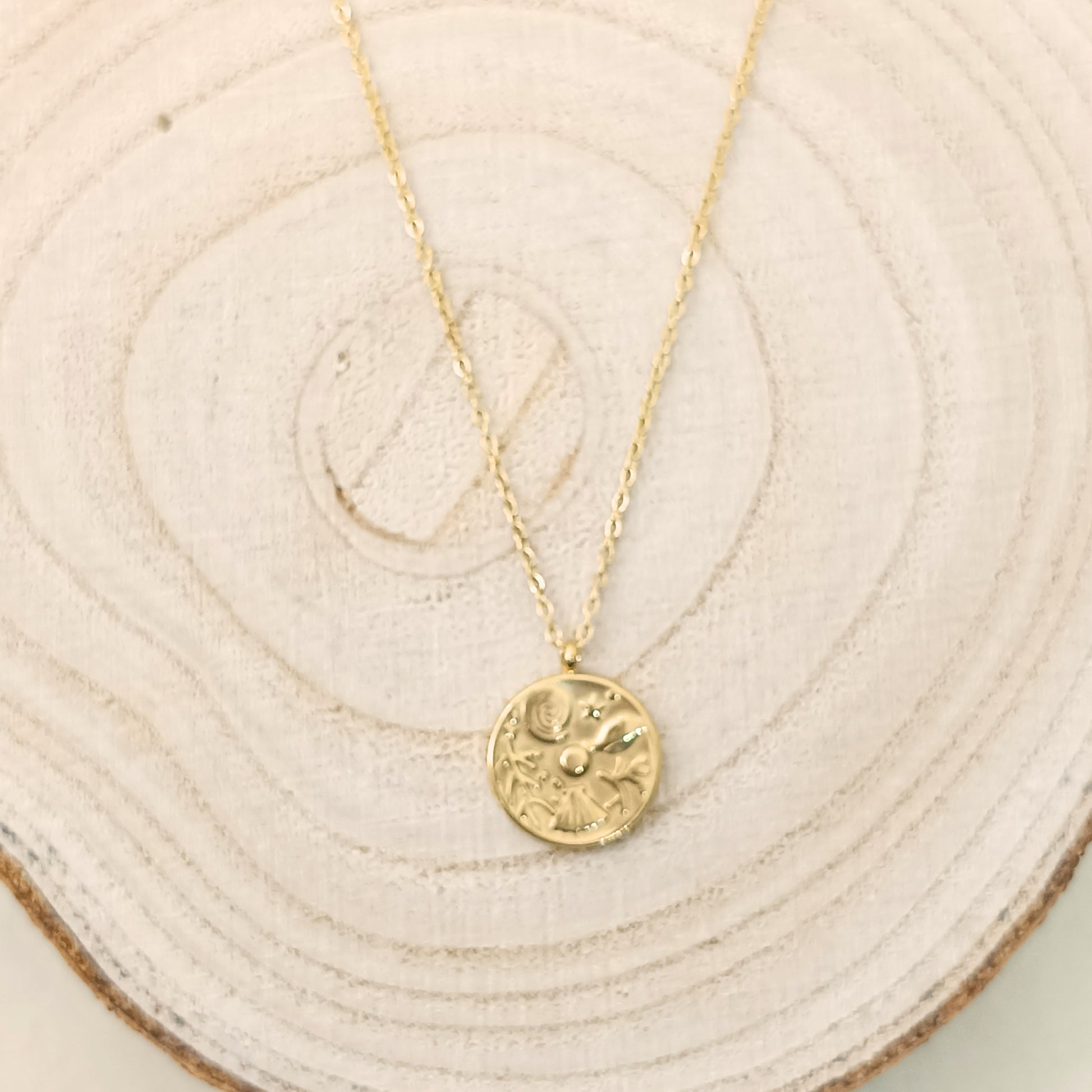 - Elegant gold-toned necklace featuring a round pendant with a Tree of Life design