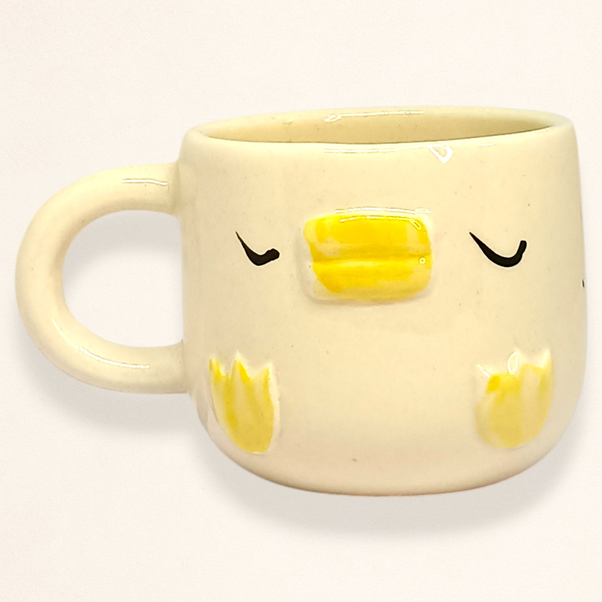 Start your day with a smile with the Chirpy Charm Mug. Handmade and thoughtfully curated by Gaivya, this ivory ceramic mug features an adorable bird-inspired design with a bright yellow beak, tiny wings, and closed-eye detailing. A playful choice for coffee, tea, or gifting.