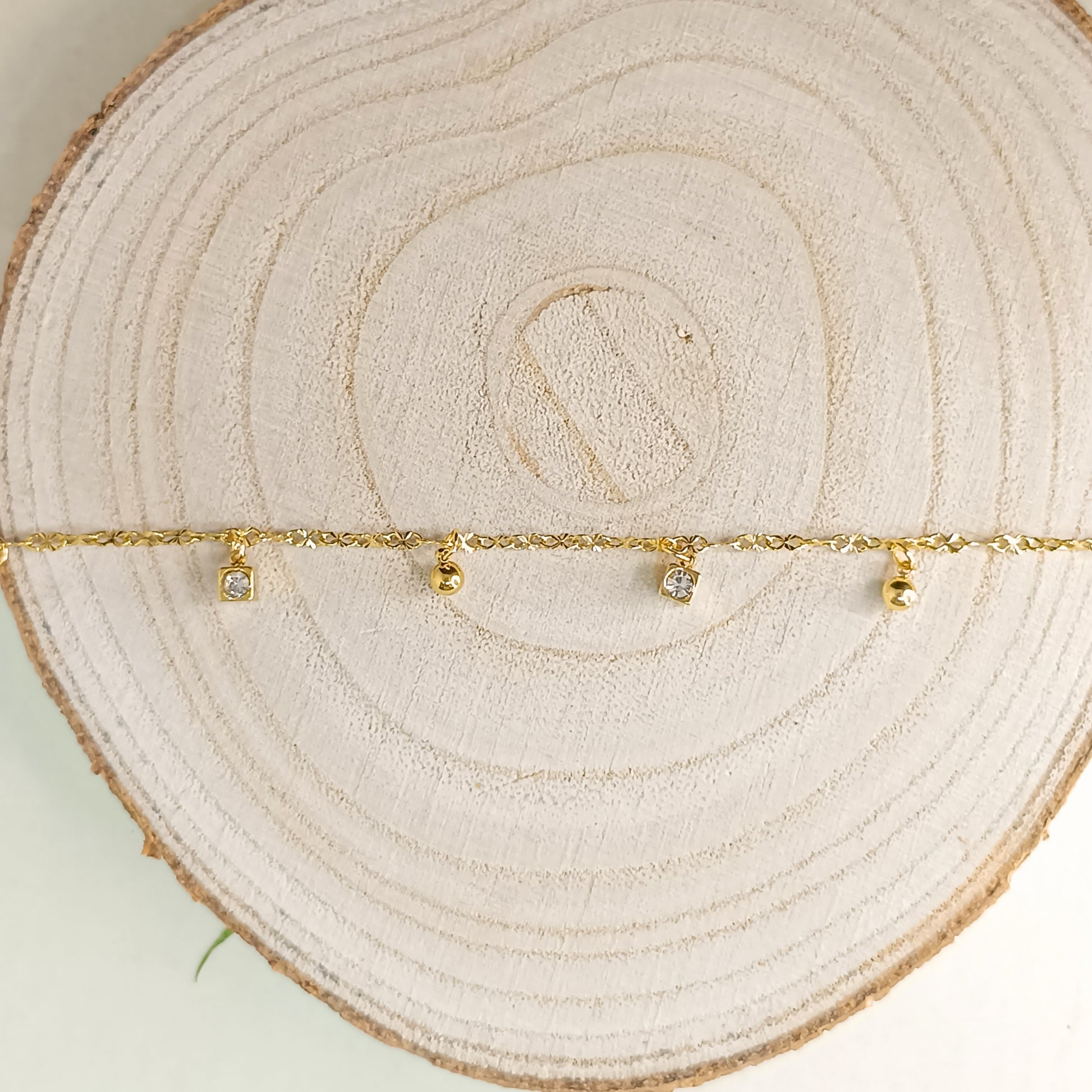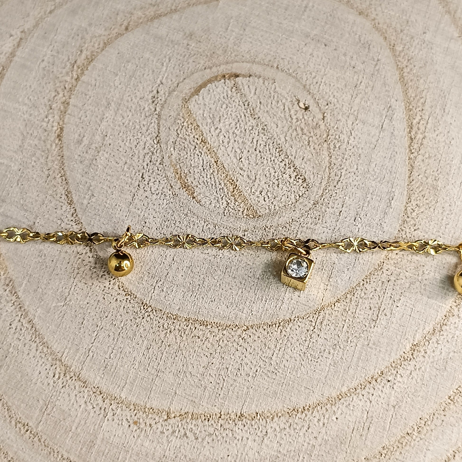 Minimalist yet eye-catching, the Crystal & Ball Charm Bracelet is designed to bring a refined sparkle to your everyday look. Crafted from premium stainless steel with a radiant anti-tarnish finish, this bracelet features alternating polished ball charms and cubic crystal drops for a chic and versatile design. Lightweight and adjustable, it’s perfect for stacking or wearing solo.