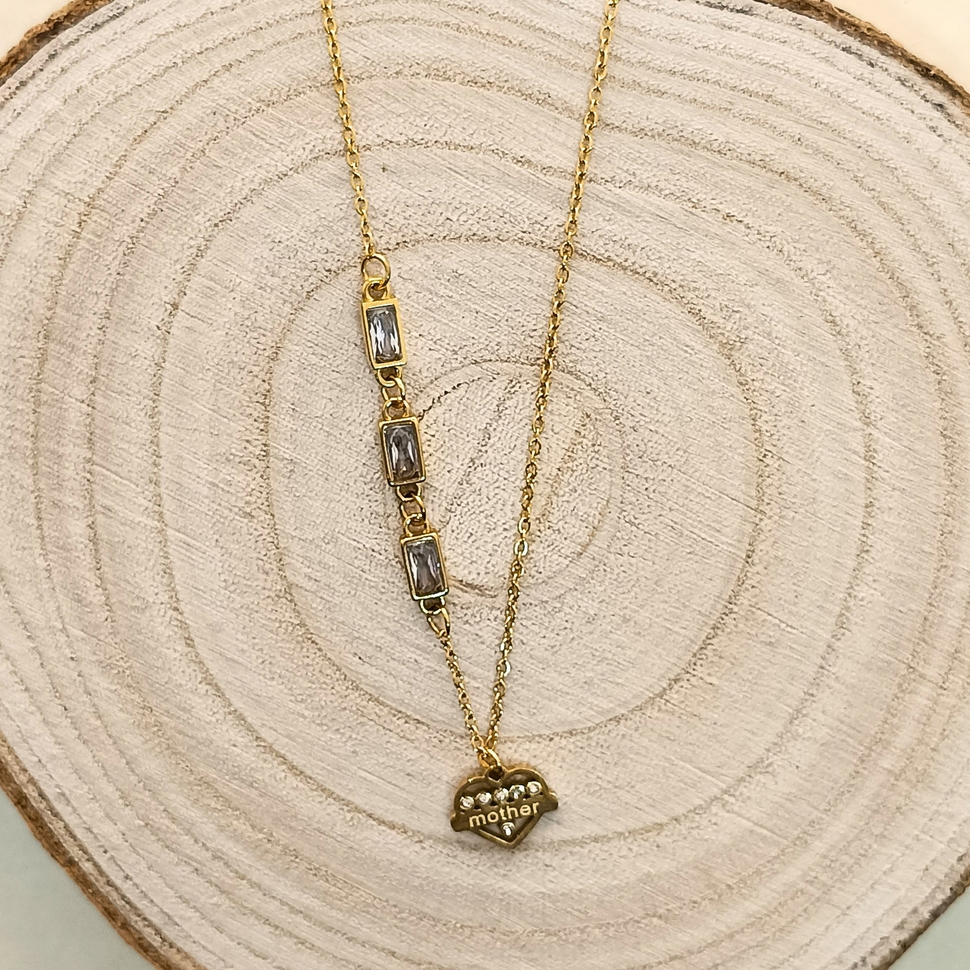 - Beautiful gold-toned heart pendant with “Mother” inscribed
