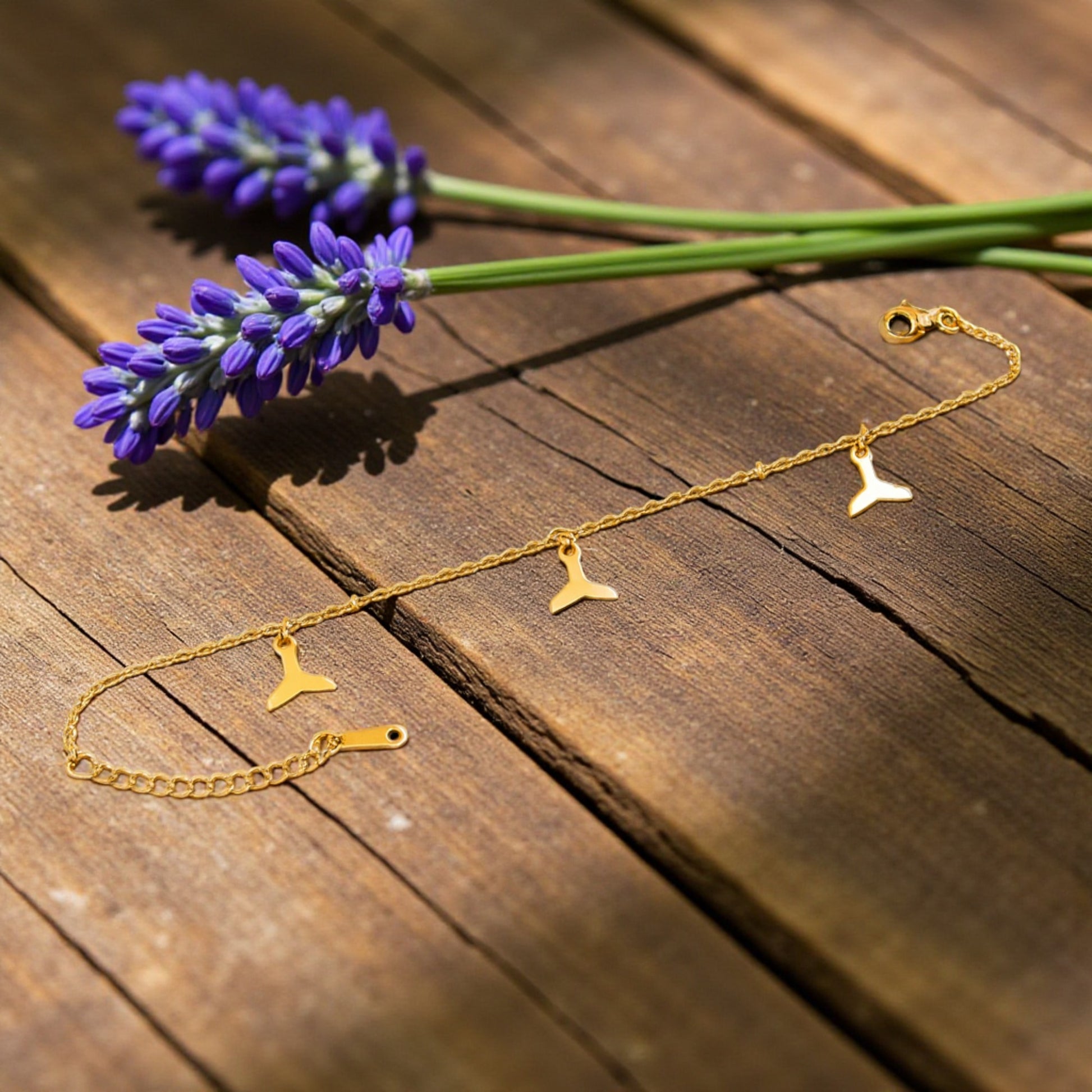 Inspired by the beauty of the ocean, the Golden Whale Tail Bracelet is a symbol of freedom, strength, and harmony. Crafted in premium stainless steel with a radiant anti-tarnish finish, this delicate bracelet features multiple whale tail charms for a graceful, nature-inspired design. Lightweight and adjustable, it’s perfect for ocean lovers or anyone who enjoys unique, meaningful jewelry.