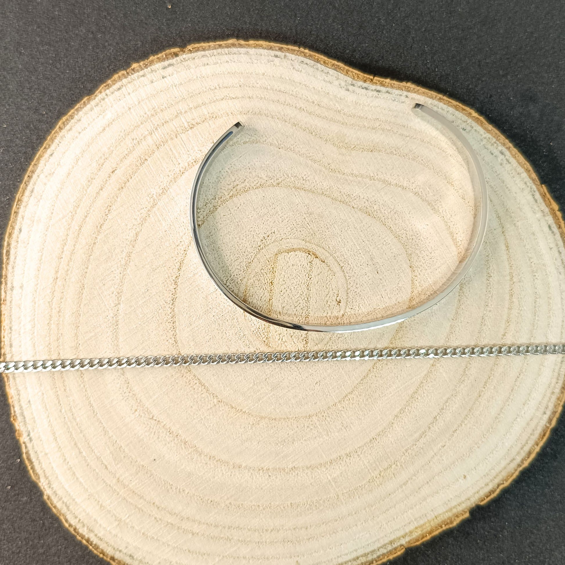 - Set Includes: 1 silver cuff bracelet + 1 curb chain bracelet