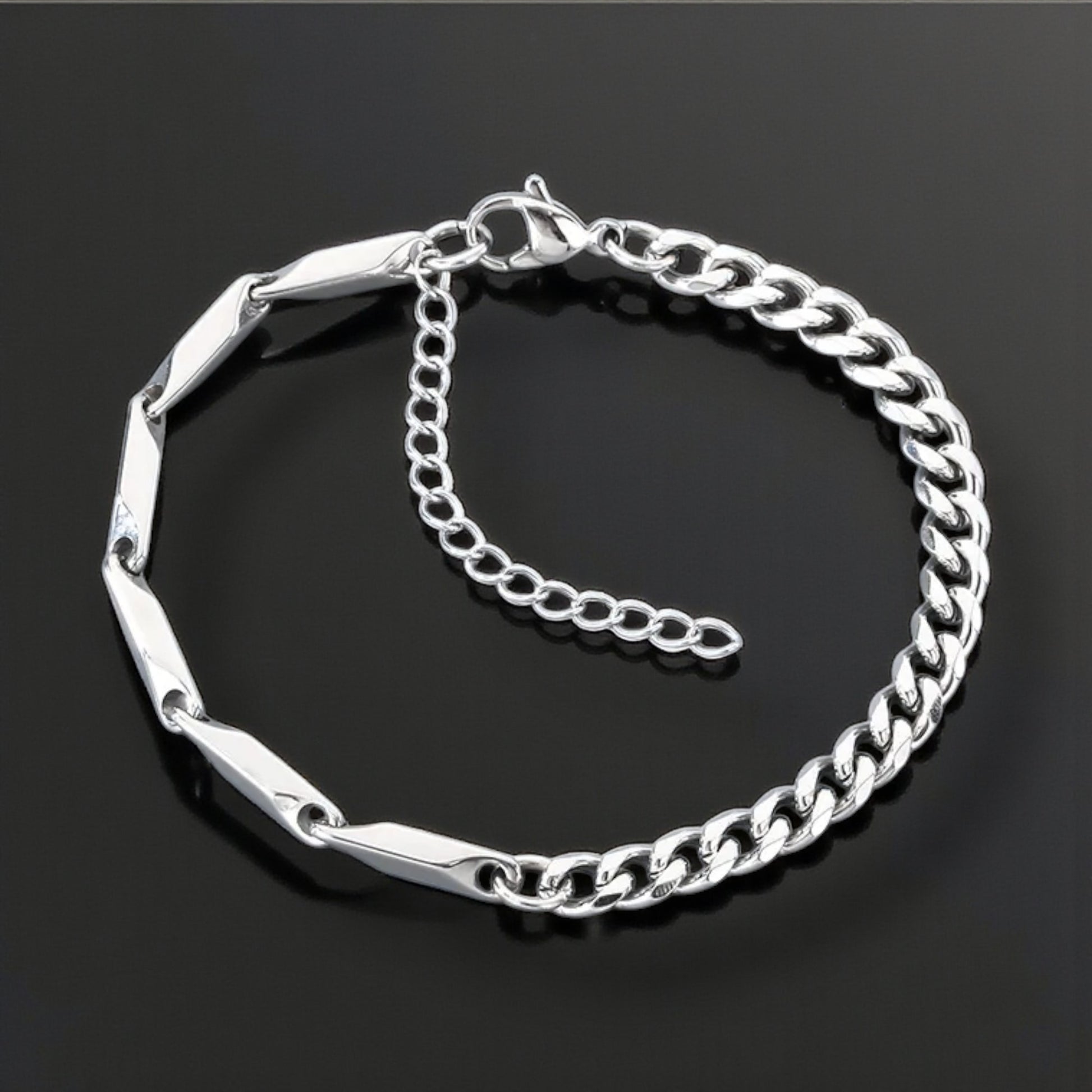 ✨ Men’s Silver Geometric Link & Curb Chain Bracelet — Stainless Steel