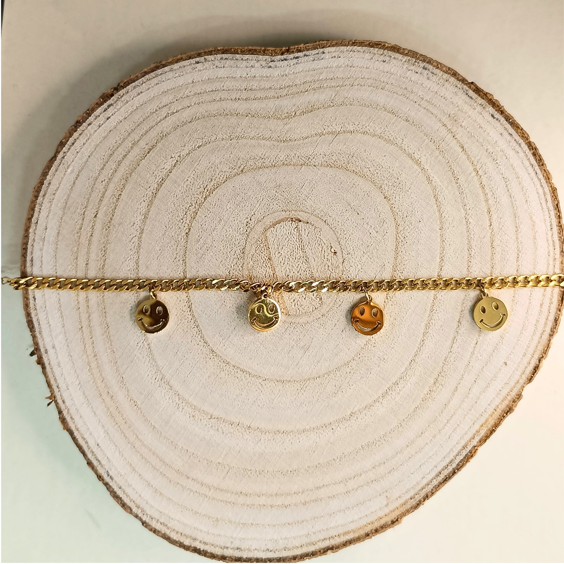 Bring positivity and fun to your look with the Smiley Charm Bracelet. Made from premium stainless steel with an anti-tarnish finish, this playful bracelet features multiple golden smiley face charms that radiate joy and happiness. Designed with a sturdy chain and adjustable fit, it’s perfect for everyday wear, stacking with other pieces, or gifting to someone who loves cheerful accessories.