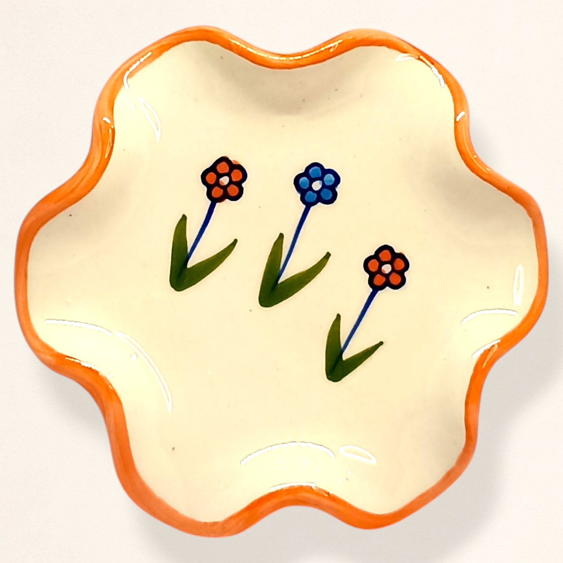 - 🌊 Unique wavy saucer with orange trim for extra charm